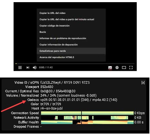 Cómo ver si YouTube está utilizando H.264, VP8, o VP9
